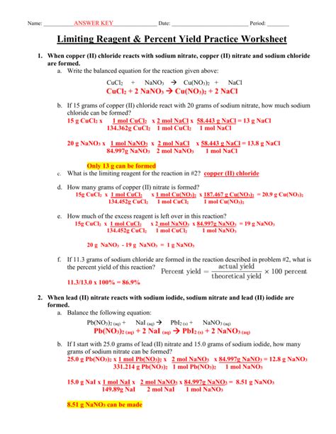 Download limiting reactant and percent yield answer key Library Binding BookBoon